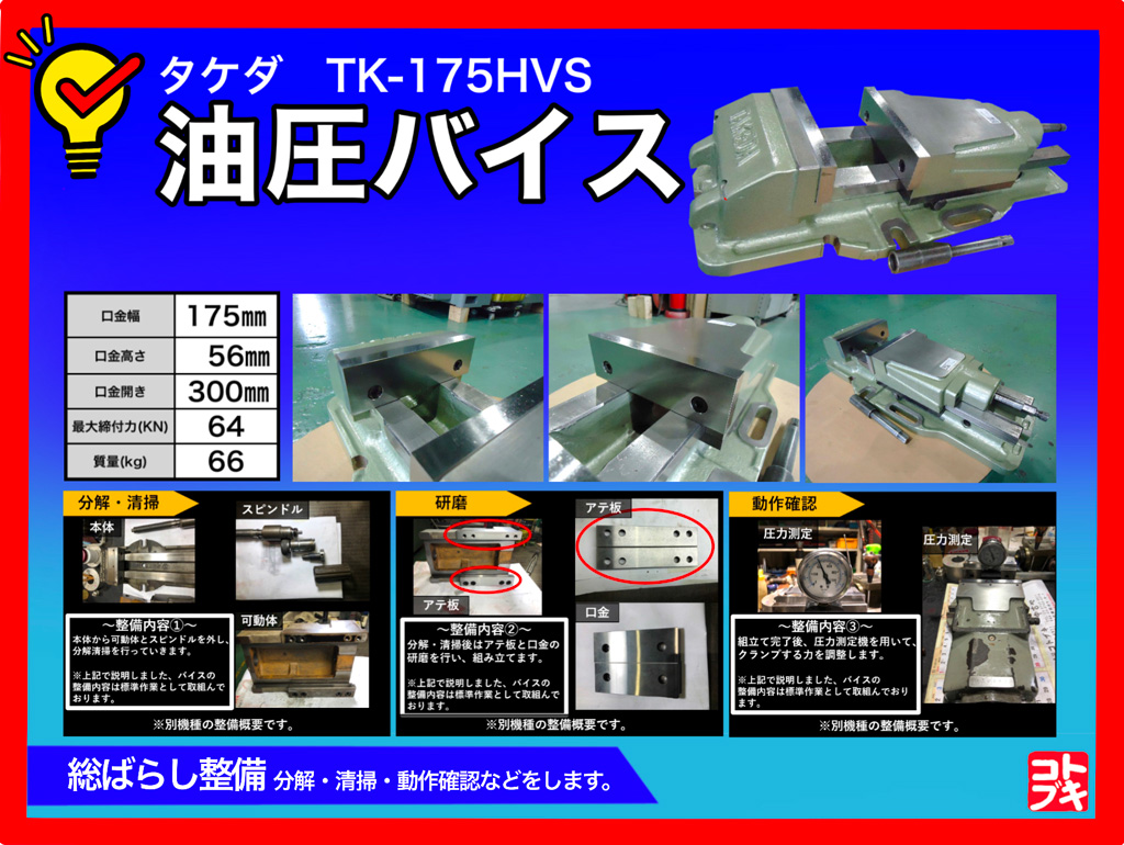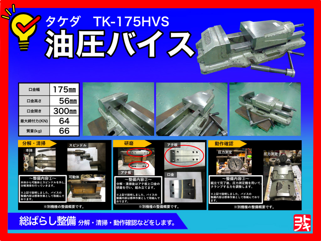 武田機械 油圧バイス TK-175HVS 油圧バイス 武田機械 TK175HVS 武田 タケダ