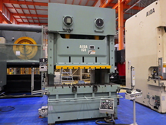C型プレス | アイダ | NC2-160(1) | 1999 | 160t ストローク長さ130 ストローク数40-85 ダイハイト380 スライド調節量100 スライド寸法1500×580 ボルスター寸法2040×600 光安付 | 埼玉県(マシンプラザ本庄) | |